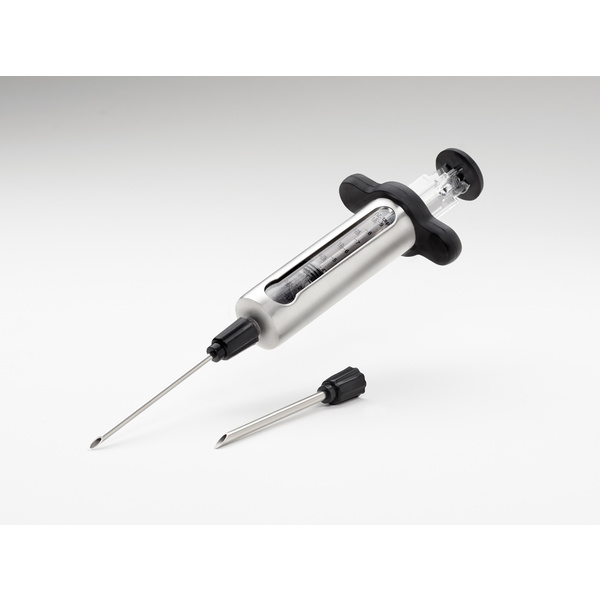 Der Napoleon® Marinaden-Injektor aus Edelstahl ist mit präziser Milliliter-Anzeige ausgestattet und verfügt über zwei Nadeln in unterschiedlicher Dicke sowie zwei dazu passenden Reinigungsbürsten. Zum Injezieren von Marinaden und Saucen. Verleiht dem Grillgut von Innen heraus einen besonderen Geschmack.