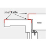 Die Kante der Tür oder Zarge ist nur leicht abgerundet und kann optisch überzeugen. Gegenüber Stößen und Beschädigungen ist sie jedoch anfälliger als die Rundkante.